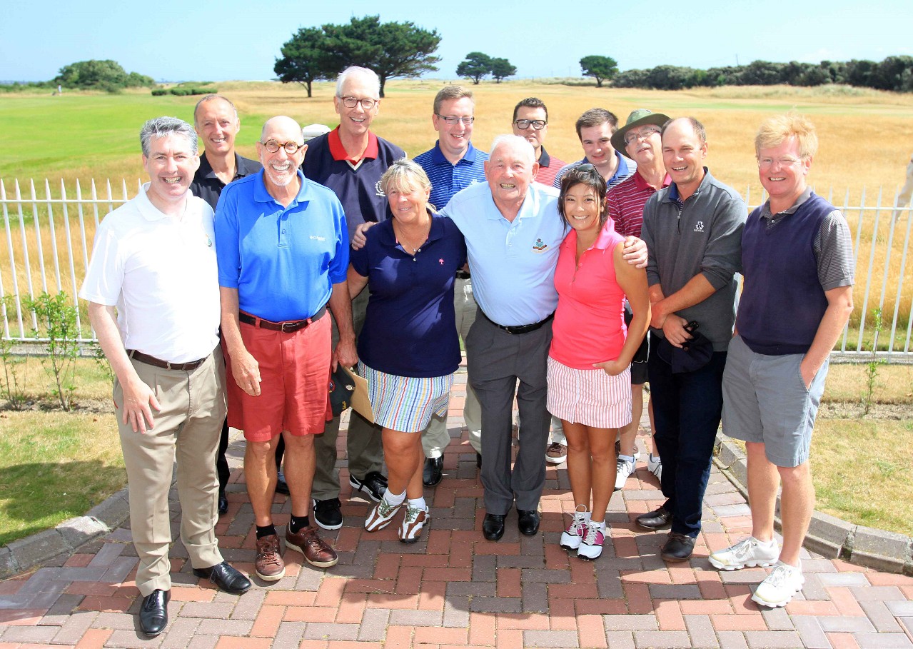 “Himself” at Royal Dublin with captain Paul O’Grady (far left), Top 50 CEO John Garrity (far tallest) and a team of mostly American golf writers. (Photo courtesy of Rory Matthews.)